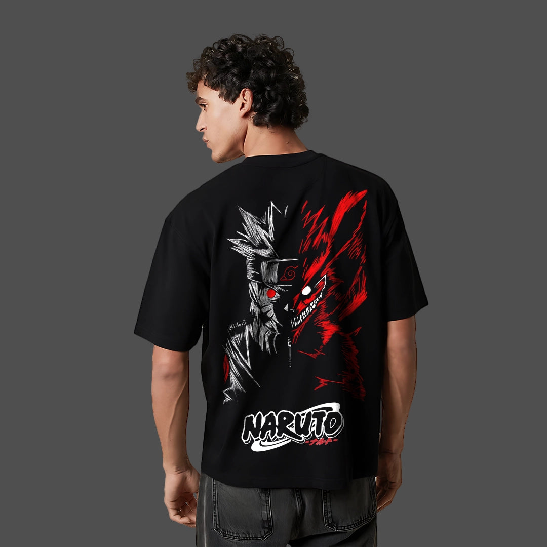 Naruto Uzumaki Kurama Mode – Oversized Fit Black T-Shirt