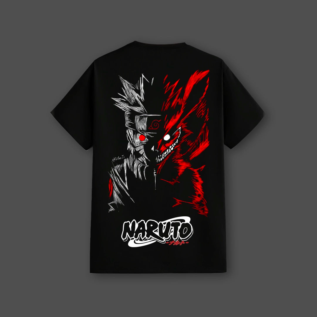 - Stand out in the Naruto Kurama Mode black t-shirt.