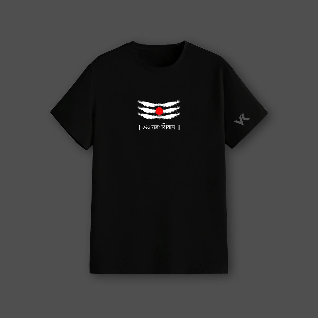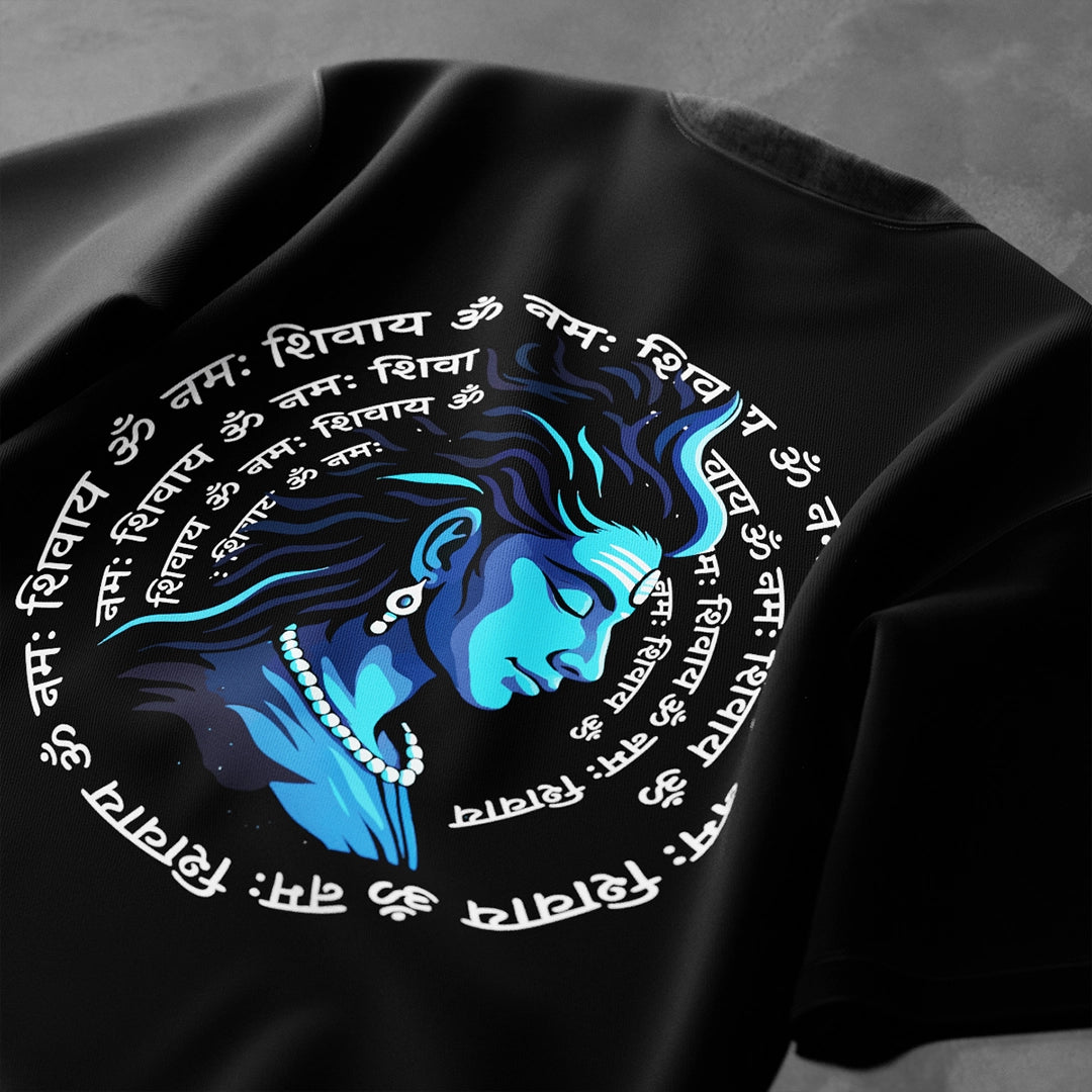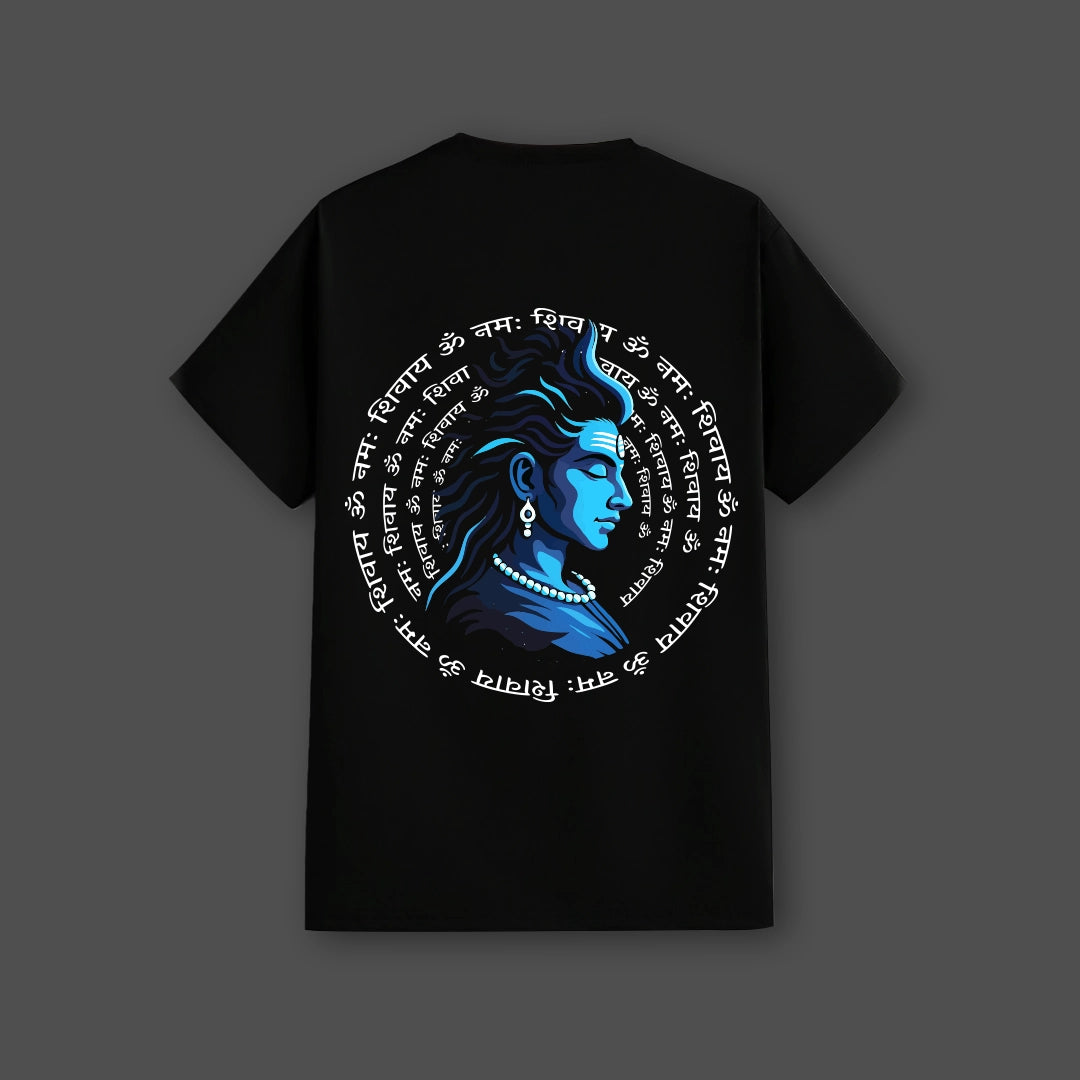 - Spiritual Regular Fit black T-shirt featuring Shiv Ji profile surrounded by Om Namah Shivaya chant.